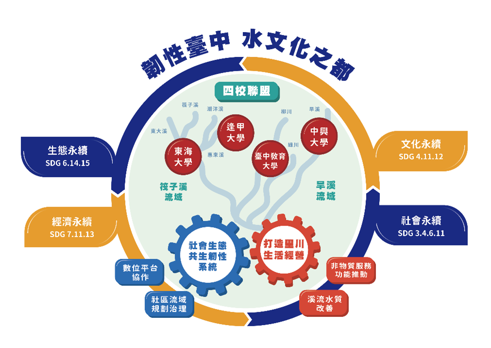 This project is led by Tunghai University, in collaboration with Feng Chia University, National Chung Hsing University, and National Taichung University of Education. Focusing on river basins in Taichung City, the project covers seven rivers and urban drainage systems. It addresses ecological, economic, social, and cultural dimensions, while leveraging university research capacity to empower local communities to protect water environments. The project aims to implement river restoration planning and cultivate local talent, putting the vision of river stewardship into practice.
