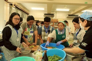圖:學生們與當地居民共同製作傳統餐點瞭解地方飲食文化