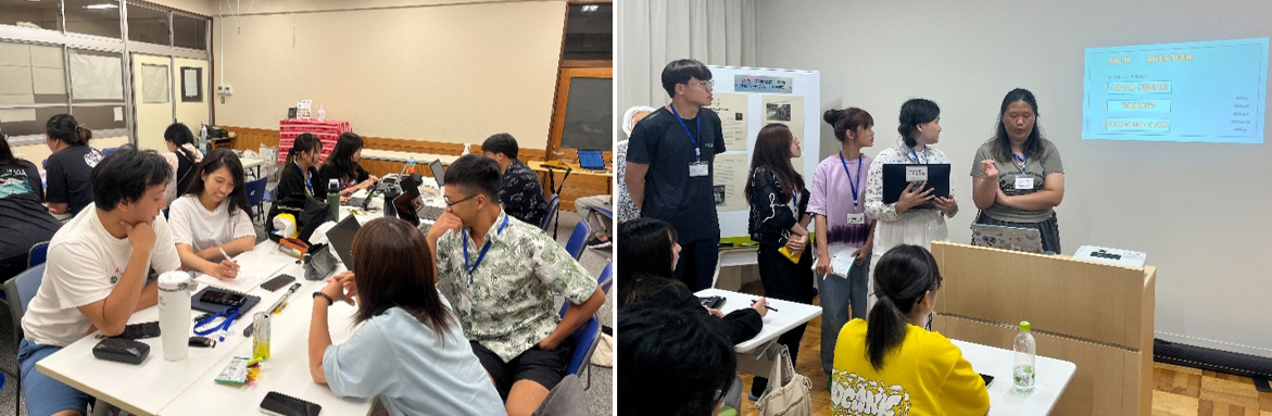 計畫初期(8月20–21日)我們在高知大學進行展開歡迎活動、行前分組討論及安全講習。由高知大學的三位老師指導大家,每組由日本學生與臺灣學生共同討論,並進行點子發想以確立合作架構與研究方向。8月22日至28日期間,學生們分別前往安田町與黑潮地區進行田野學習與居民訪談。