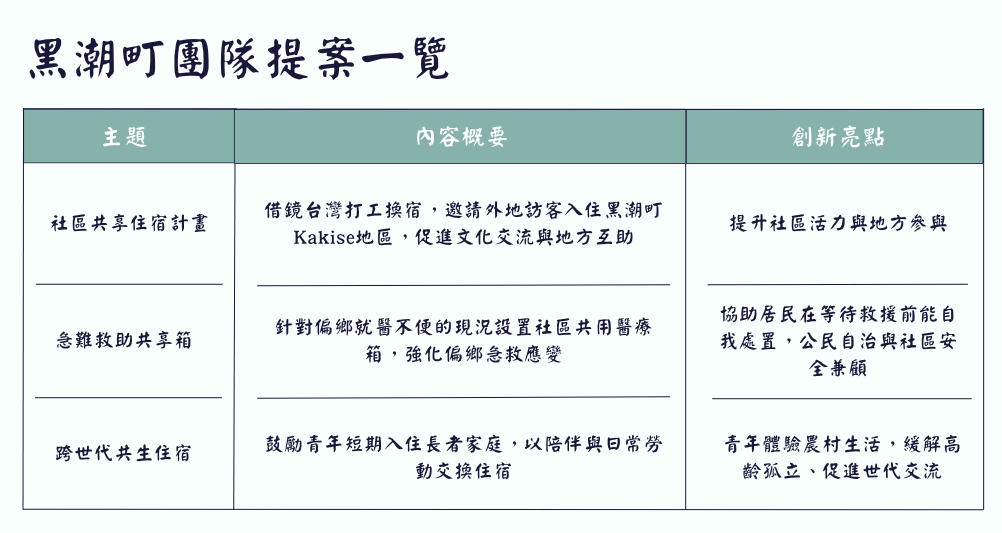 這些提案不僅展現學生對黑潮町課題的理解,更體現出以「共享」與「連結」為核心的地方創生精神。